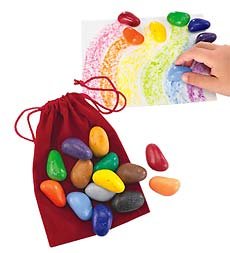 Box of Crayon Rocks, set of 64. Create beautifully textured drawings with these innovative crayons. Their special pebble-like shape allows children to color in large, wide strokes while strengthening their tripod grip (which prepares little fingers for handwriting). And they're made from soy wax and colored with natural minerals, so they're completely non-toxic. Made in USA. For ages 3 and up. Available Styles 16-Piece Set includes 16 different colors 64-piece Set includes 4 each of 16 vibrant colors.